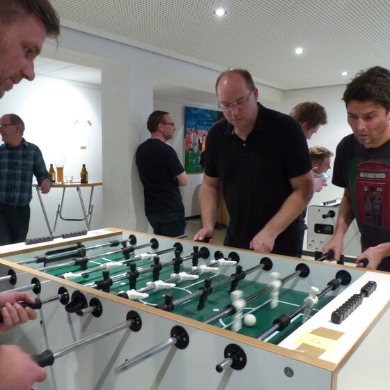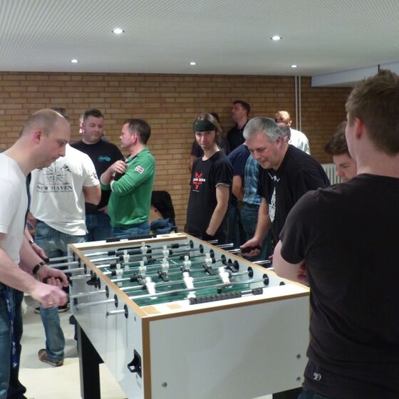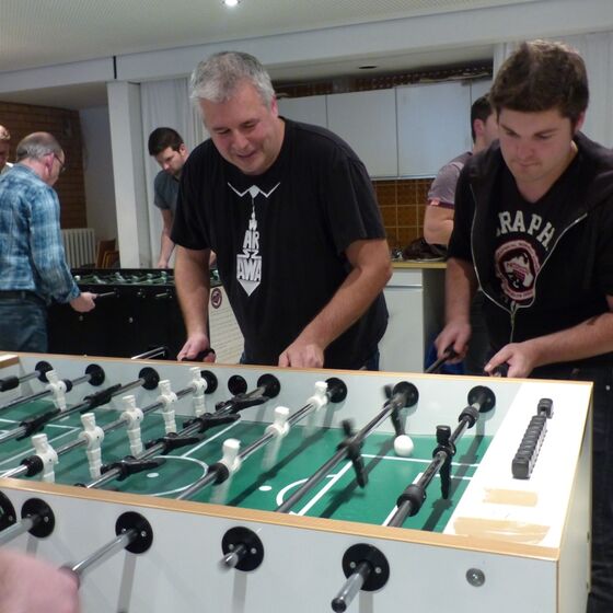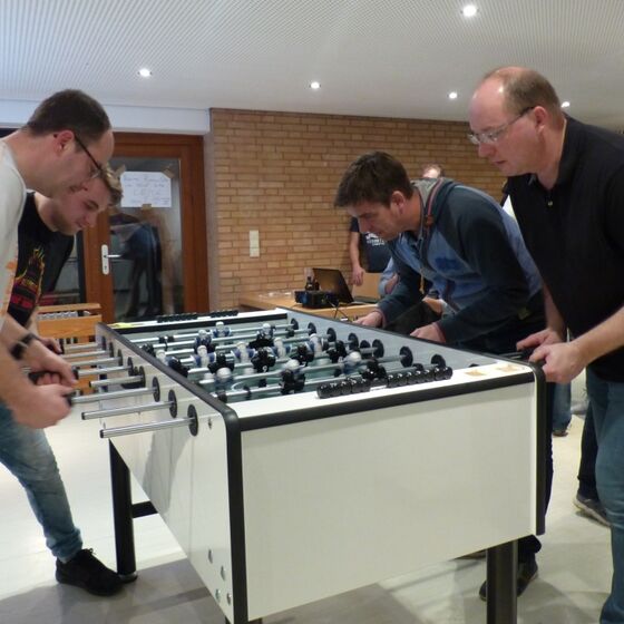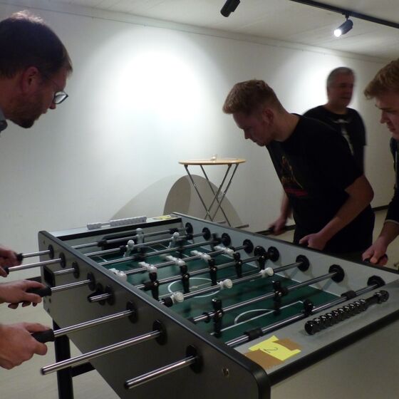 Beim diesjährigen Kickerturnier wurde wieder ehrgeizig gespielt. Die vielen Teilnehmer lieferten sich im Kellerraum der Lukaskirche spannende Duelle.