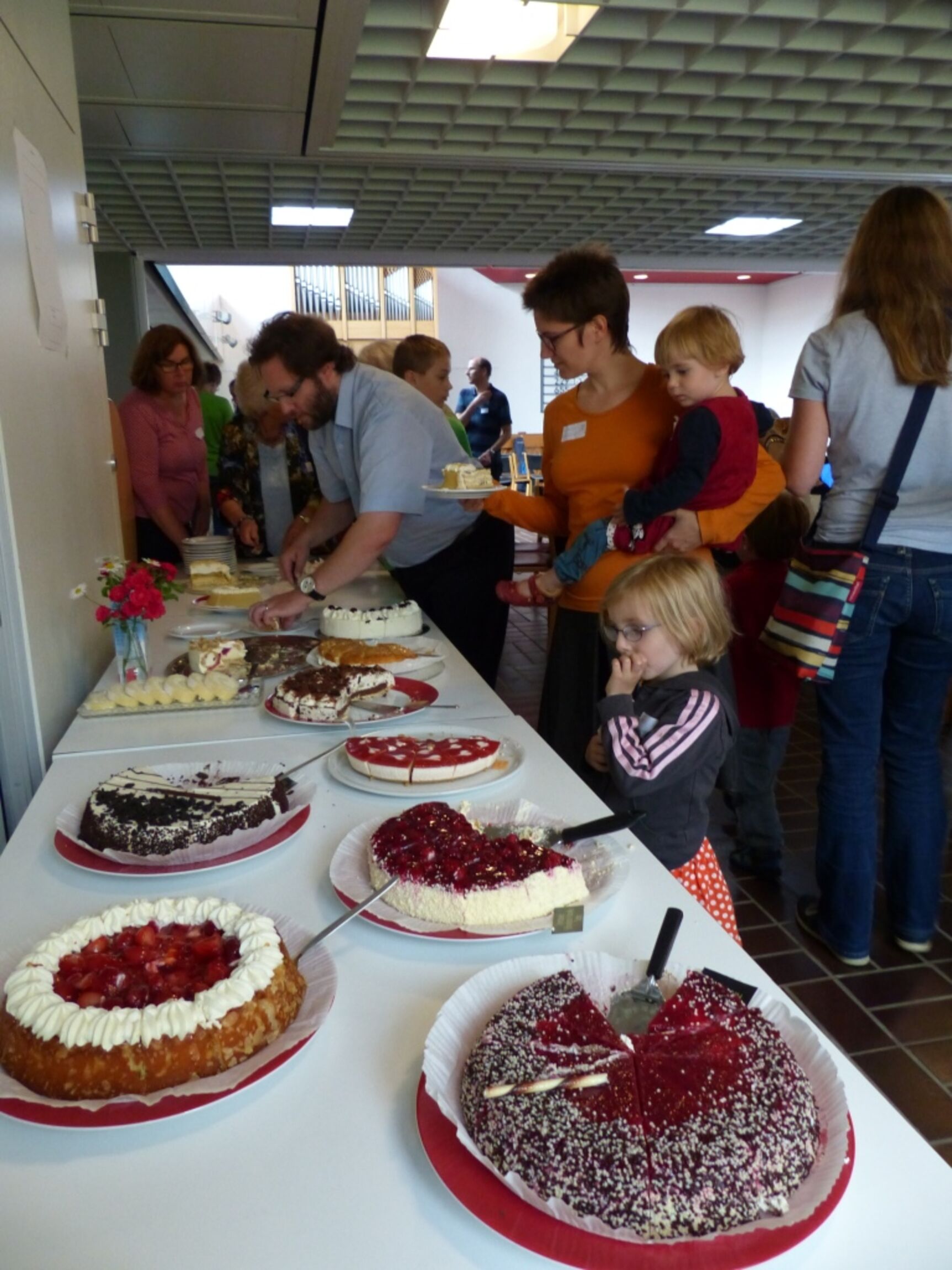 Mehr als 70 Ehrenamtliche hatten viel Freude beim Mitarbeiterfest und ließen sich die Torten der „Dankeschön-Kuchentafel“ schmecken.