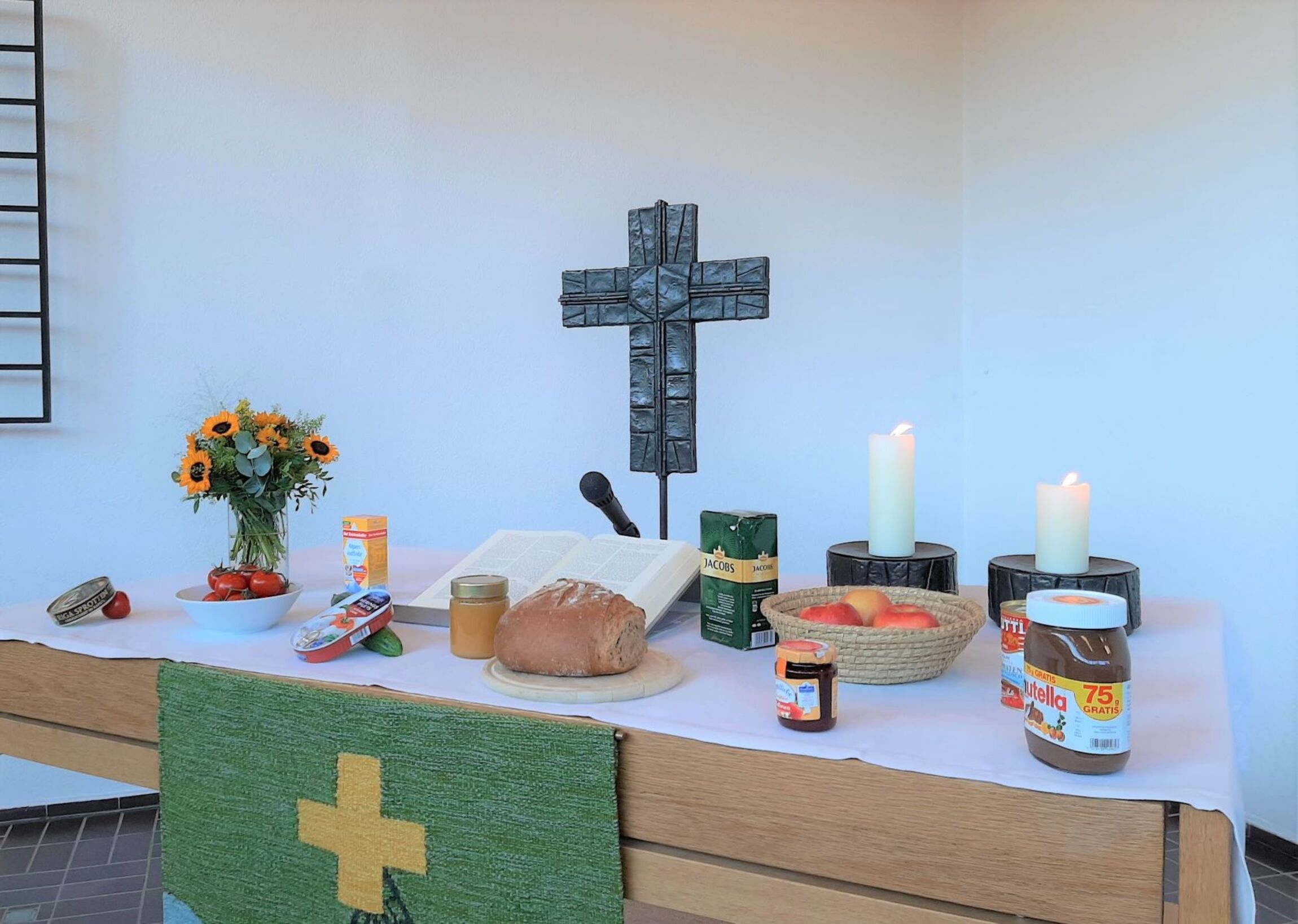 Der Altar wurde mit Nutella und Brot, Honig und Äpfeln gefüllt.