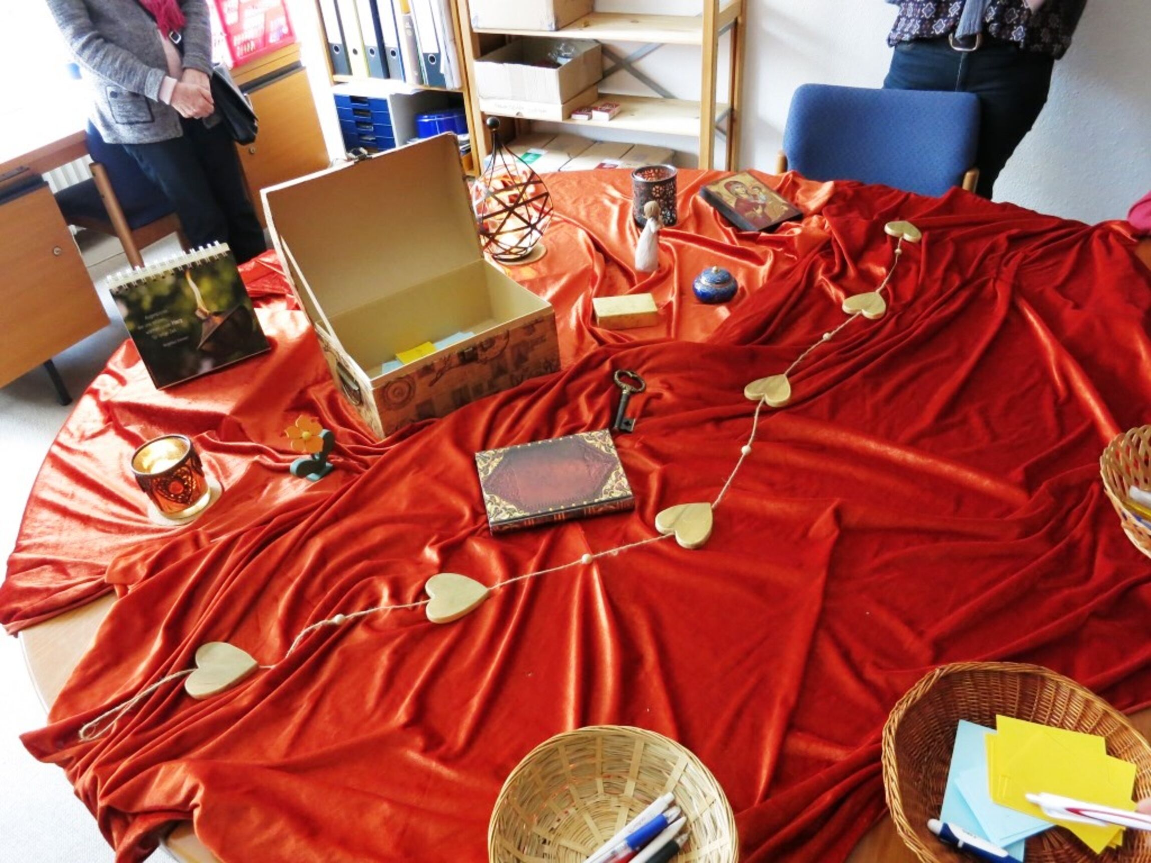 Was ist mir heilig? Viele kleine Schmuckstücke und Kärtchen wurden hier in eine Schatztruhe gelegt.