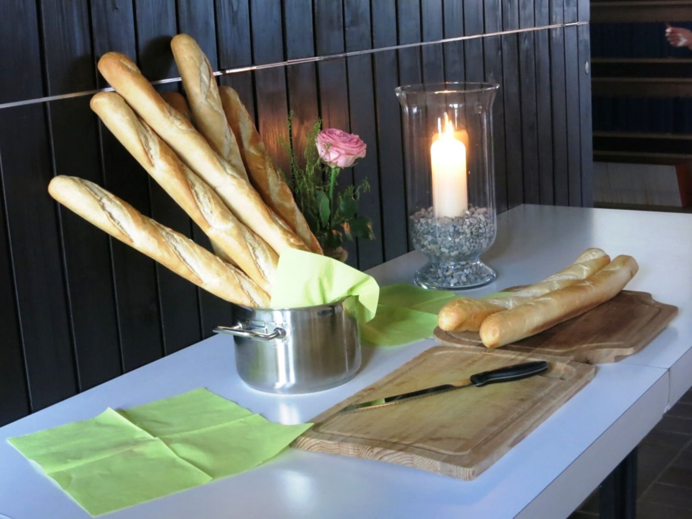 Brote zum Teilen lagen bereit. Jeder schnitt ein Stück ab und es wurde gemeinsam gegessen.