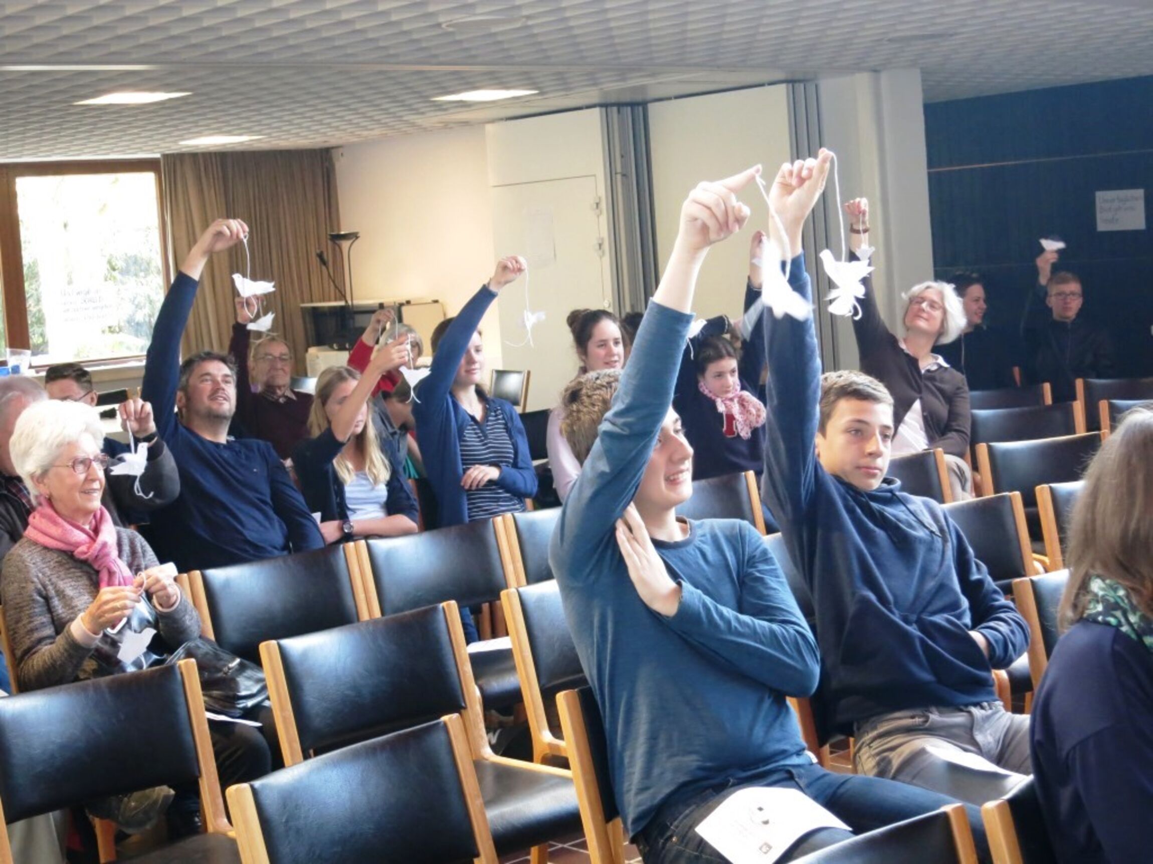 Hier wurden Friedenstauben gebastelt.