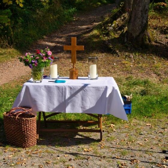 Wie in den letzten Jahren, war auch in diesem Jahr bereits der Weg dorthin ein Gottesdienst. An vier Stationen gab es Impulse für die Gedanken unterwegs.