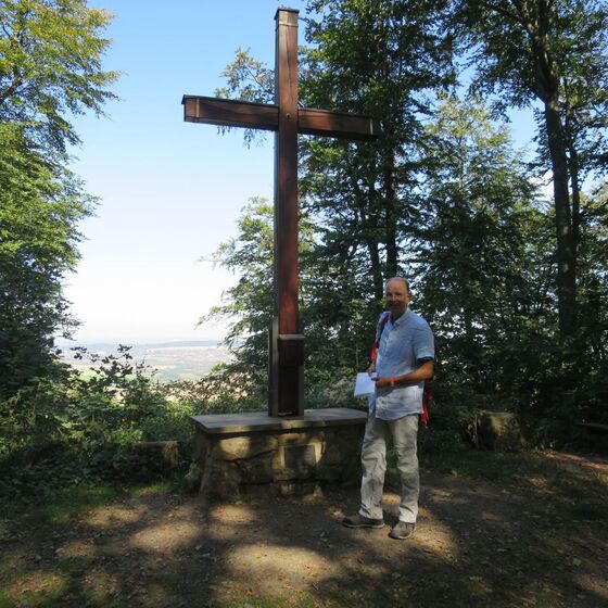 Unser Pilger-Ziel ist seit einigen Jahren das Gipfelkreuz auf dem Tosmarberg, einem Höhenzug südlich von Hildesheim oberhalb vom Söhrer Forsthaus, um dort einen Gottesdienst zu feiern.