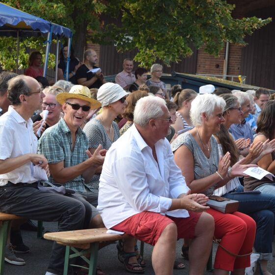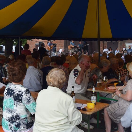 Mitten in Ochtersum auf Ohlendorfs Hof waren Zelte aufgebaut, es gab Grillwürstchen, Kuchen und Salate und natürlich war bei den heißen Temperaturen auch für ausreichend Getränke gesorgt.